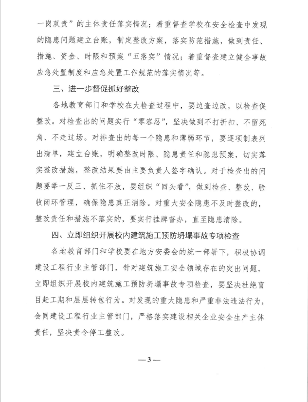 要以问题和事故为导向,进一步强化红线意识和底线思维,认真研判安全生产形势,盯住薄弱环节和突出问题。在元旦、春节、寒假期间及开学前等关键时间节点,在校园在建工程安全、校车安全、危险化学品安全、消防安全、食品安全、校园安全、校舍安全、特种设备安全及传染病防控等重点安全领域,严格做到“不放过任何一个漏洞,不丢掉任何一个盲点,不留下任何一个隐患”,坚决做到“把风险防控挺在隐患前边、把隐患排查治理挺在事故前面”,坚决防范和遏制学校各类安全事故发生。