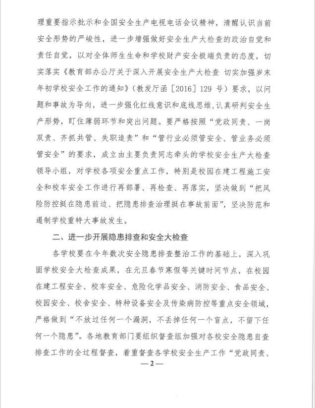 现将《教育部办公厅关于进一步加强学校安全生产大检查工作的紧急通知》(教发厅〔2016〕9号)转发给你们,请结合本部门实际,认真抓好贯彻落实。
