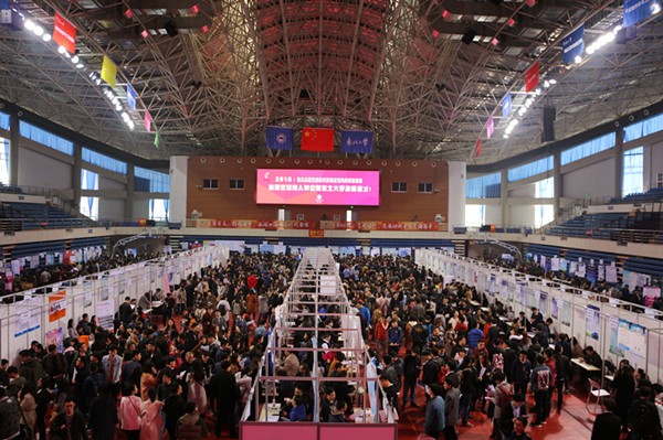 3月24日,东北大学2018年毕业生春季就业双向选择洽谈会在东北大学刘长春体育馆、羽乒馆、冶金学馆举行。8000余名2018届本科毕业生及2019届毕业研究生参加了此次活动。