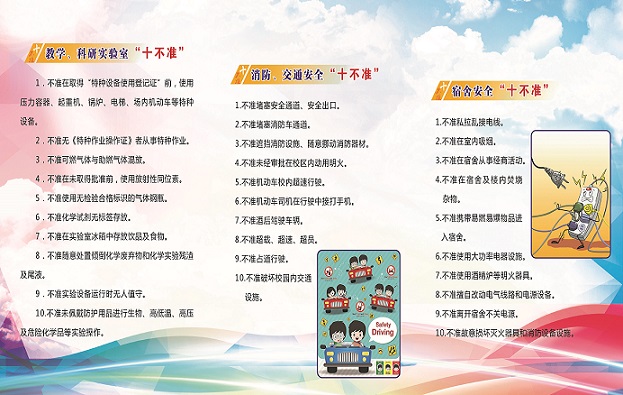 学校以“安全生产月”为契机,开展以“生命至上,安全发展”“安全是福、共创共享”“懂安全、知危险、会避险”的安全文化理念为核心的安全文化建设,让广大师生员工在科学文明的安全文化主导下,共同创造安全环境,通过安全理念的渗透,使师生员工安全行为成为行动的自觉,从而达到从“要我安全”向“我要安全”转变。