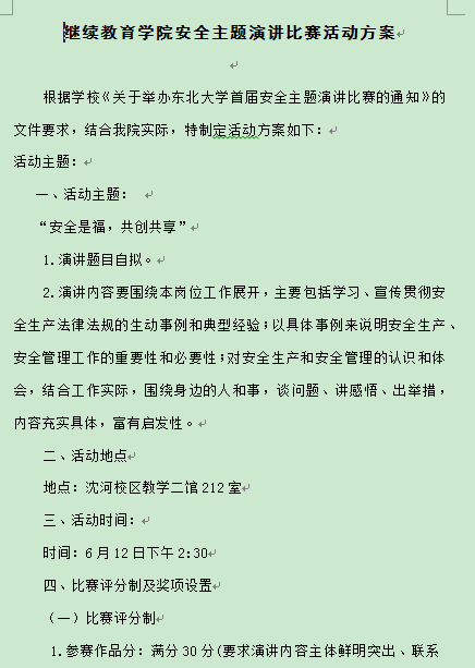 3.6月3日出台了继续教育学院安全主题演讲比赛活动方案