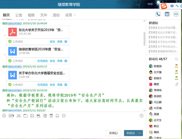 1.5月30日发布了《继续教育学院2019年度“安全生产月”和“安全生产校园行”的活动方案》,并对活动进行了动员和部署。