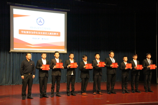 大会开始,贺翔向2019级本科生、研究生安全负责人颁发聘书,嘱托被聘任同学们担起班级安全责任,构建安全、稳定、和谐的校园环境。