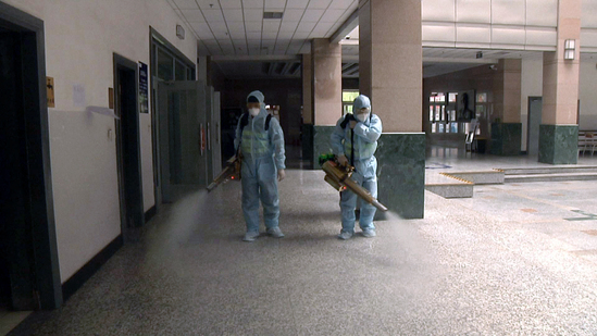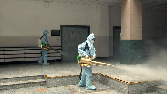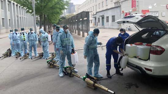 5月7日,沈阳市蓝天救援队走进东北大学开展防疫消毒工作,22名市蓝天救援队员着专业防护服、护目镜等防护装备,背负重达四十斤的脉冲喷雾机,对我校逸夫教学馆和大成教学馆进行了全方位、全覆盖、无死角的义务防疫消毒作业。