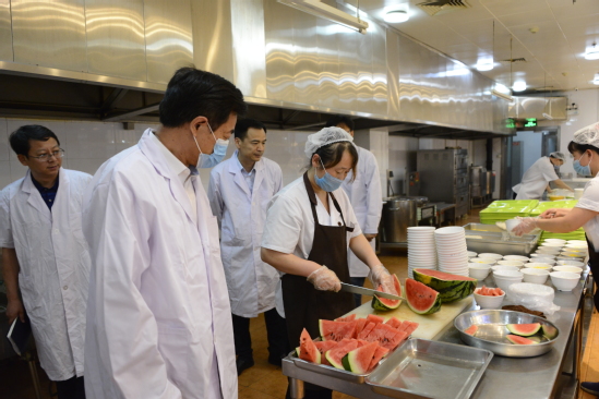 冯夏庭一行首先来到浑南校区食堂,对食品卫生安全情况进行了检查,听取了食堂员工对饮食服务情况的汇报,要求相关工作人员进一步加强食品及原材料运输、储存、加工等各环节的监督管理,全力保护师生的健康安全。