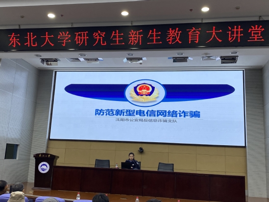 10月18日,东北大学研究生新生教育大讲堂安全教育专题报告举行,沈阳市公安局大东分局反诈中心主任郎群,学校公安处处长张立志、安全委员会办公室副主任李建强、信息化建设与网络安全办公室总工程师徐建有受邀作专题报告。资源与土木工程学院、冶金学院、材料科学与工程学院的新生代表在主楼822室聆听报告,各学院研究生辅导员和其他研究生新生在分会场通过视频直播集中收看本次专题讲座。