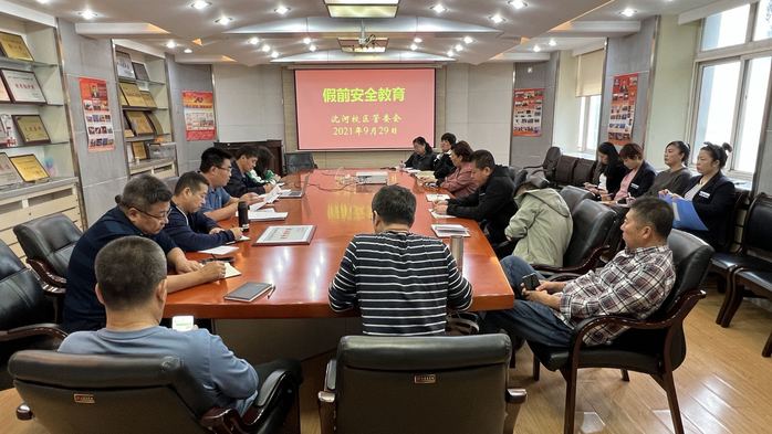 9月29日,沈河校区管委会在办公楼三楼会议室召开了国庆节假前安全工作会议,办公楼全体机关工作人员和后勤保障服务中心班组长参加了会议。会议由沈河校区管委会副主任张宏宇主持。
