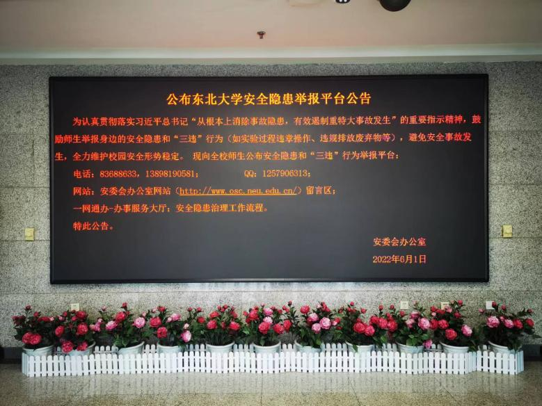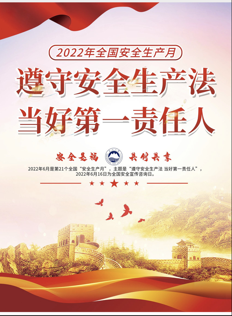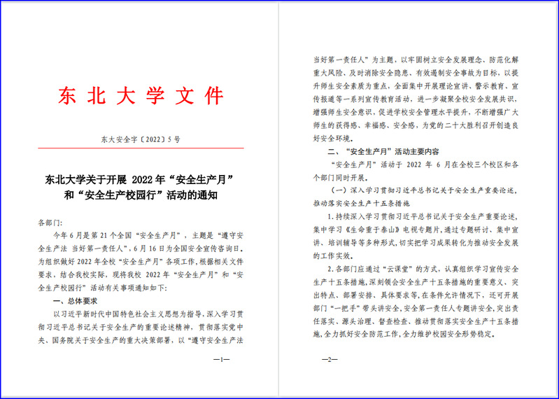 6月1日,随着学校《东北大学关于开展2022 年“安全生产月”和“安全生产校园行”活动的通知》下发,我校2022年“安全生产月” 和“安全生产校园行”活动正式启动。本次活动以“遵守安全生产法当好第一责任人”为主题,通过开展既有声势又有实效的宣传教育活动,促进学校安全管理水平提升和安全形势持续稳定好转,不断增强广大师生的获得感、幸福感、安全感,坚决维护学校安全形势持续稳定向好。