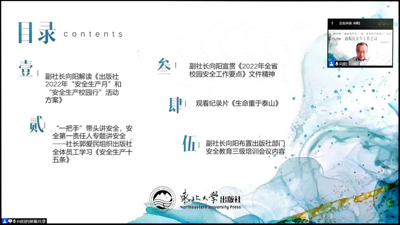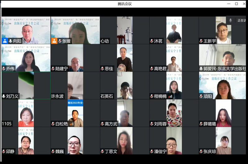 6月14日上午9点—10点,出版社线上召开2022年安全工作会议,出版社全体员工、返聘员工、临时工、相关方参加会议。