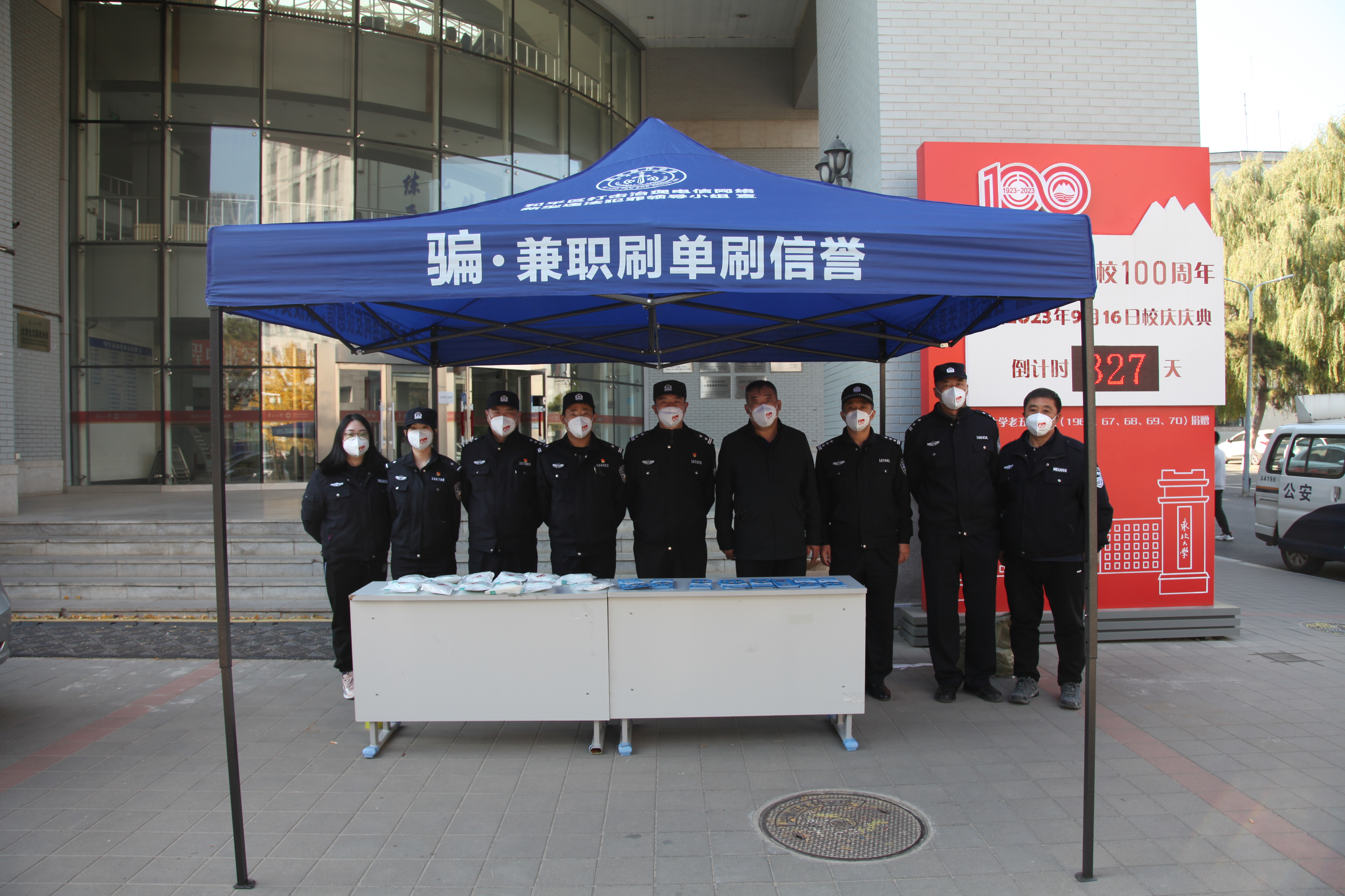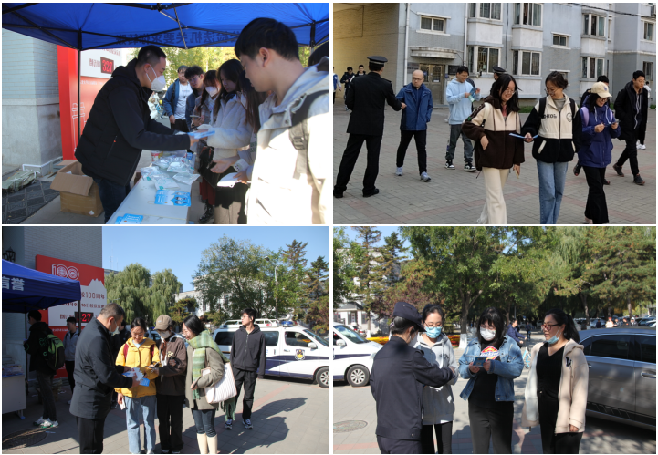 10月24日中午,公安处联合沈阳市公安局和平分局新型犯罪研究中心、南湖派出所在大学生活动中心门前和学生城食堂北侧设立防范电信网络诈骗宣传点,安保工作人员和民警走入学生中间,发放防骗反诈宣传单和宣传口罩,宣讲防骗反诈知识,剖析电信网络诈骗的套路,提醒同学们要保护好个人信息,牢记“不听不信不转账”的原则,提高识骗防骗意识。