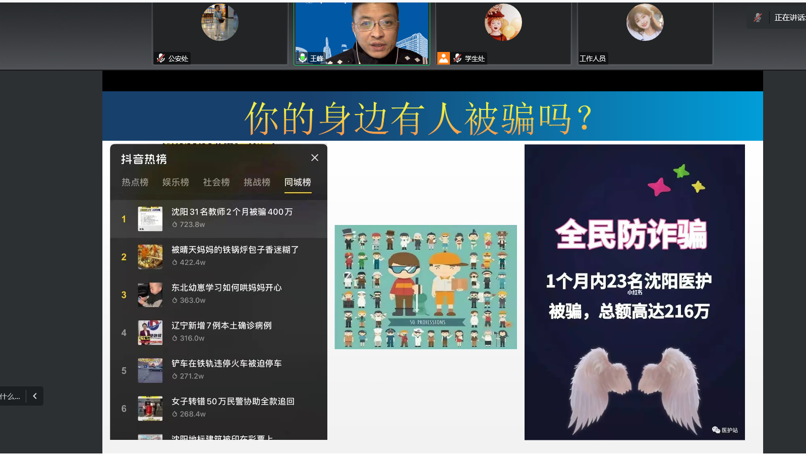 公安处与研究生院、学生工作处联合,借助研究生新生教育大讲堂、本科生安全教育讲座两个载体,邀请沈阳市公安局刑侦局侦查大队大队长王峰警官,针对2022级新生开展防范电信网络诈骗专题讲座。