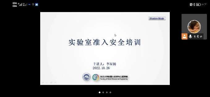 10月26日中午13时,机器人学院在浑南校区建筑学馆A102召开了2022级新生实验室安全知识培训大会,会议以线下线上相结合的方式举行。学院实验中心实验员李星扬,综合办公室王思佳以及学院2022级本科生、研究生全体新生参与本次培训会。会议由王思佳主持。