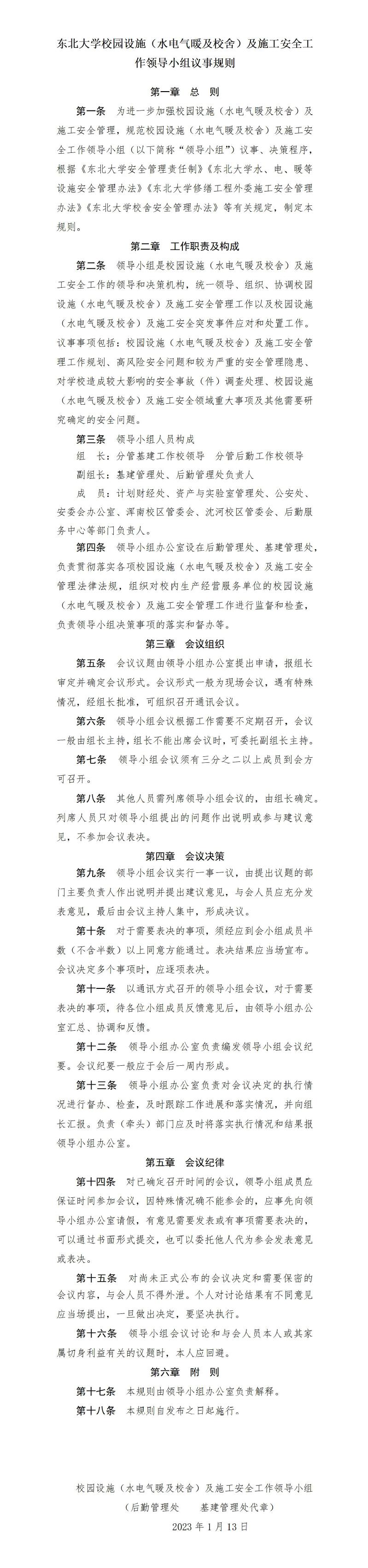 东北大学校园设施(水电气暖及校舍)及施工安全工作领导小组议事规则