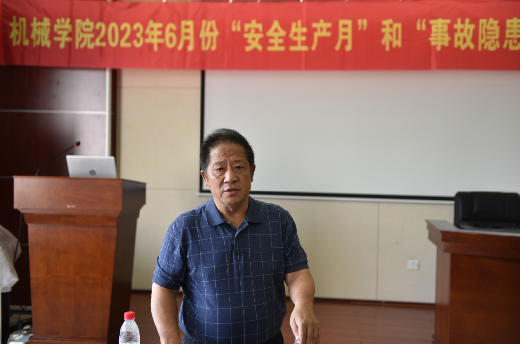 首先,副院长田畅宣读了《关于成立机械学院2023年6月“安全生产月”活动领导小组的通知》,并对附件一《机械学院2023年“安全生产月”和“事故隐患专项整治行”活动计划》工作要点进行解读,并对该“活动计划”中自6月开始到年底的安全治理活动进行了部署。