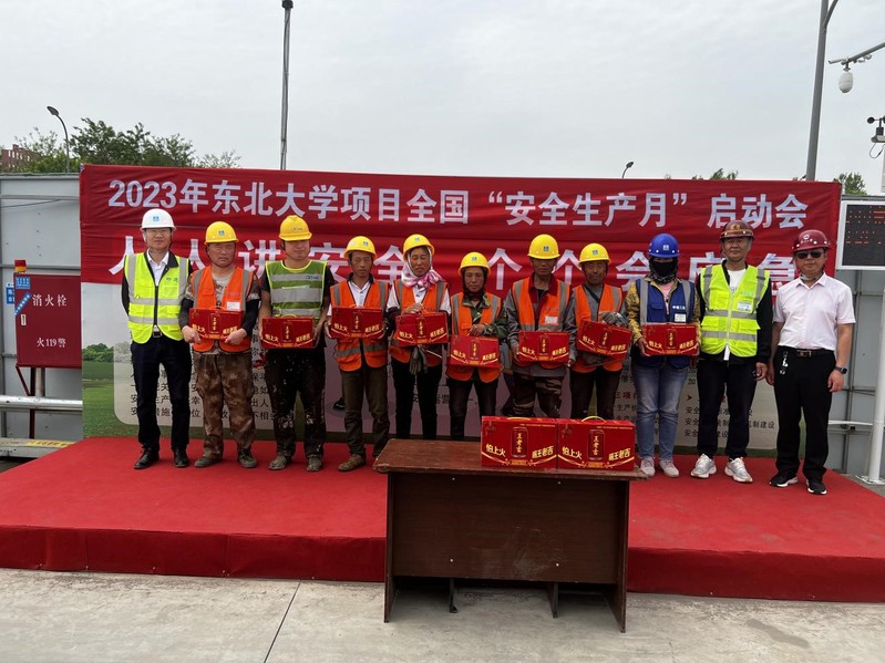 今年6月是第22个全国“安全生产月”,活动主题为“人人讲安全、个个会应急”。此次活动以“安全生产月”为契机,深入开展校园建筑施工安全生产隐患专项整治。活动现场施工单位相关负责人宣读贯彻安全生产月活动方案并做动员讲话。项目总监强调安全生产的重要性。基建管理处相关负责人表示,东北大学高度重视安全生产,人才公寓项目对于学校引进人才、改善教师住宿环境非常重要,希望参建各方恪尽职守,安全先行,圆满地完成人才公寓项目各项建设工作。活动最后,由项目经理与分包代表带领所有人员共同宣誓,并对行为安全之星、平安班组进行颁奖。
