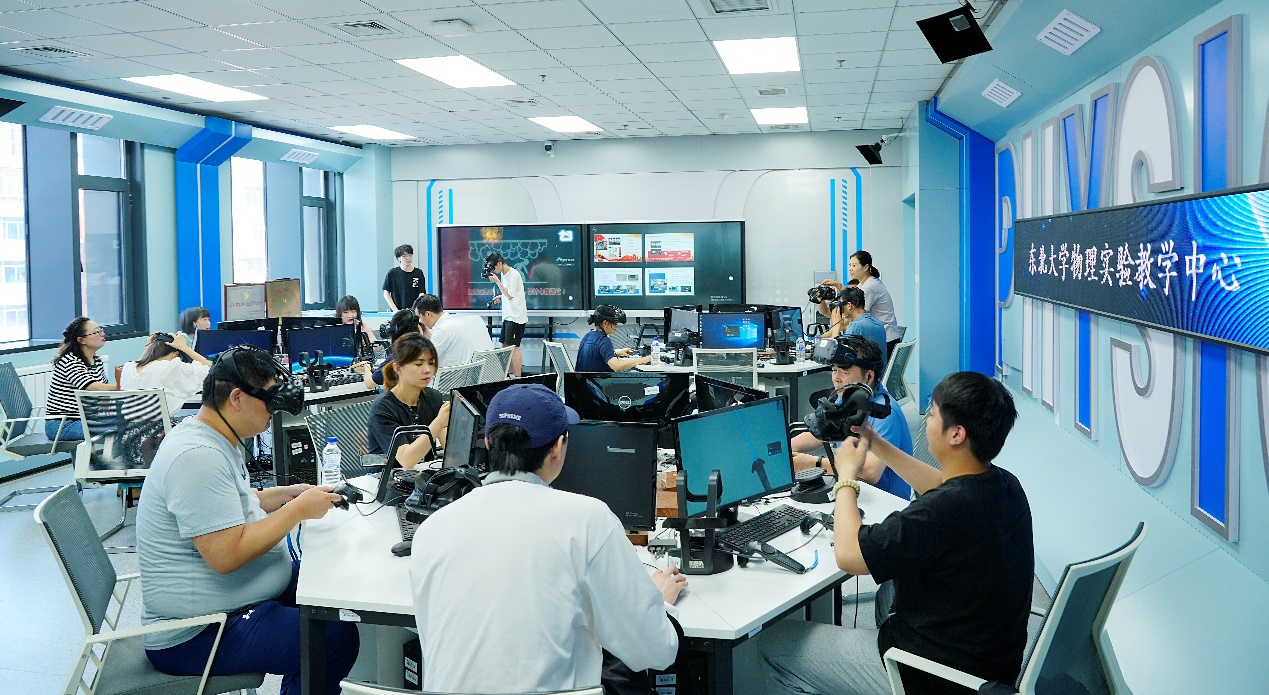 活动得到了理学院物理实验教学中心的大力支持,在实验教学中心老师的技术指导下,通过先进的虚拟现实技术,提升教职员工在火灾等紧急情况下的应急响应能力。参与者们穿戴最新的VR头戴设备,置身于多种模拟火灾场景中,接受逼真的应急处理训练。实训基地设计精良,模拟了火灾烟雾、警报声、逃生路线指示,阶段性设置了逃生操作选项,包括身体逃生姿态、使用灭火器等细节处理,引导参与者正确应对火灾。
