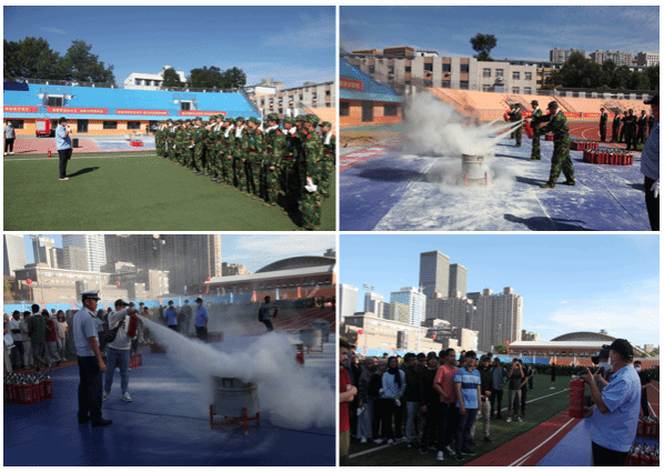演练开始前,文化路消防救援站消防员进行了消防车高空灭火展示。本次演练共分为“烟气体验室”应急疏散逃生、墙壁消火栓使用、灭火器使用、违章用电器的展示、常用消防救援器材展示5个部分。和平区文化路消防救援站的消防队员和公安处工作人员共同为参演学生讲解了消防安全常识、违章用电器的使用危害、如何进行应急逃生、灭火器和墙壁消火栓的使用要点。参加演练的2024级学生在消防员和公安处工作人员的指导下进行了“烟气体验室”应急疏散逃生、干粉灭火器灭火、墙壁消火栓组装等科目的演练。