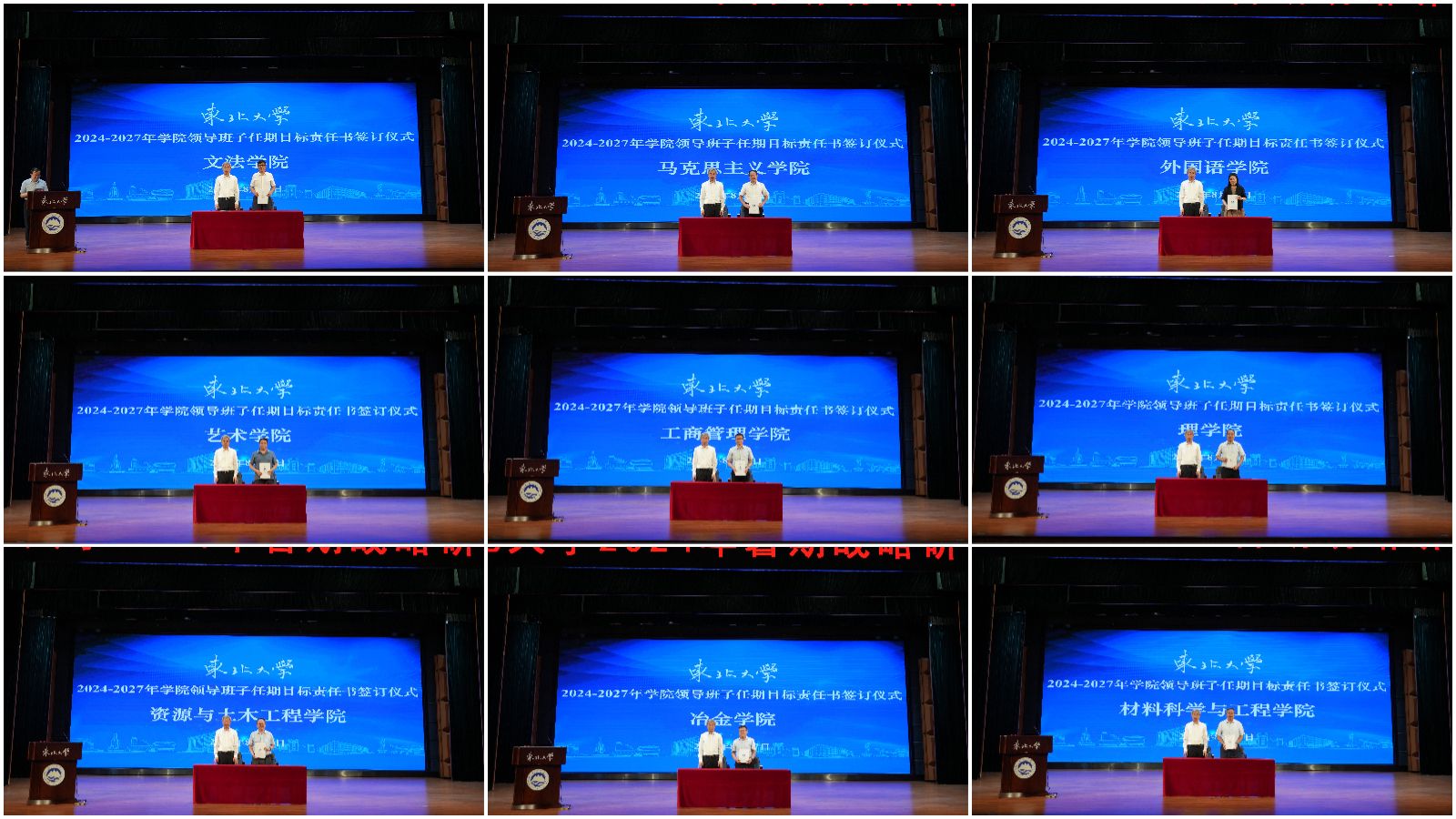 郭海指出,学校与各学院签订目标责任书具有重要意义。实施学院领导班子任期目标责任制是学校党委着眼事业发展需要进行的一项制度性设计,目的是深入贯彻落实习近平总书记给东北大学全体师生重要回信精神,充分发挥考核工作指挥棒作用,激励干部担当作为,切实提高核心竞争力,推动学校各项事业高质量发展。各学院党政主要负责同志是任期目标实施的主要责任人,负责对任期目标和年度目标执行情况的推进和督促,及时发现和解决实施过程中出现的问题,确保本学院的任期目标按时保质完成。各学院要将任期目标考核作为提升自身办学水平和质量内涵的重要抓手,确保目标管理工作取得实效。各相关职能部门要坚持严肃认真、实事求是的工作态度,扎实做好任期目标数据信息的采集、审核和统计,确保任期目标考核真实可靠。