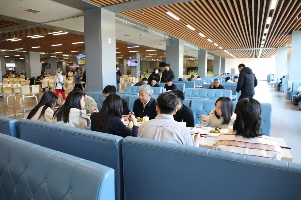 在浑南校区二食堂一楼,冯夏庭与来自浑南校区各学院的8名学生代表进行餐叙交流,详细了解每个学生的学习生活情况和未来发展规划。冯夏庭表示,学校深入贯彻落实习近平总书记重要回信精神,坚持“五育并举”教育理念,从德智体美劳等五个方面积极为学生学习创造条件,助力每一名学生健康成长。希望同学们能够充分利用学校充足的实验设备和学习资源,通过参与科创比赛等方式积极参与科研实践,在不同的应用场景中锻炼自己,提升科研能力,努力成长为堪当民族复兴重任的时代新人。