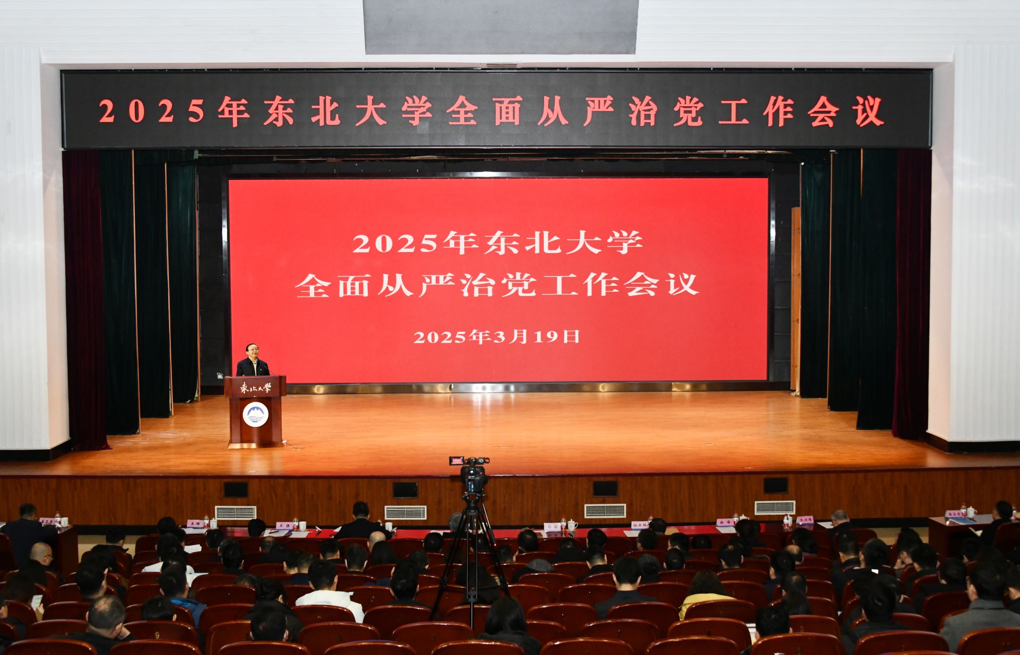 3月19日上午,东北大学召开2025年全面从严治党工作会议,深入学习贯彻习近平总书记在二十届中央纪委四次全会上的重要讲话精神和全会精神,以及2025年教育系统全面从严治党工作视频会议精神,回顾总结过去一年学校全面从严治党和党风廉政建设工作,分析研判形势,部署安排今年重点工作。校党委书记郭海出席会议并讲话,校长冯夏庭主持会议并传达习近平总书记在二十届中央纪委四次全会上的重要讲话和全会精神、2025年教育系统全面从严治党工作视频会议精神,党委副书记张皓总结部署纪委工作。