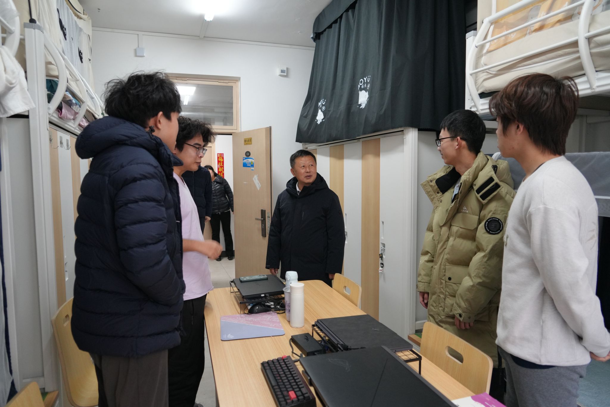 2月24日,副校长徐伟来到国际教育学院,实地走访留学生宿舍,听取留学生开学准备工作汇报。徐伟强调,要高标准做好学校国际化建设顶层设计,统筹推进师资、学生、教育发展等各领域国际化工作。要全方位保障留学生开学安全稳定,细致做好留学生日常生活关怀和教育服务保障,建立起多部门联动的快速处置机制,规范涉外事项处置流程,推动留学生管理服务工作精准化、高效化开展。